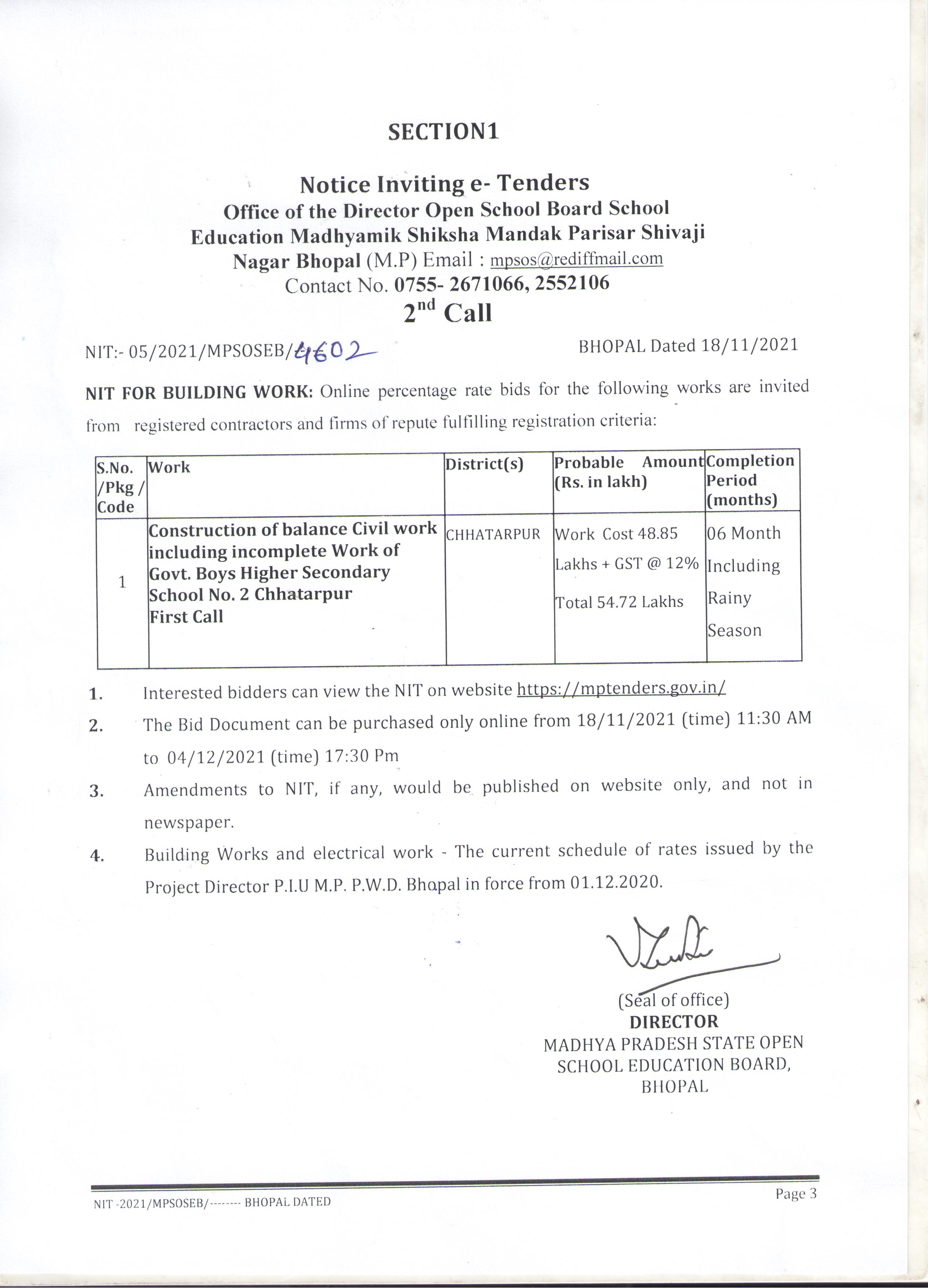 1 Dealership Opportunity for Bamboo Furniture & allied production with Skill Development Centre for Excellence, M.P. State Open School Education Board MPSOSEB/3147/A,