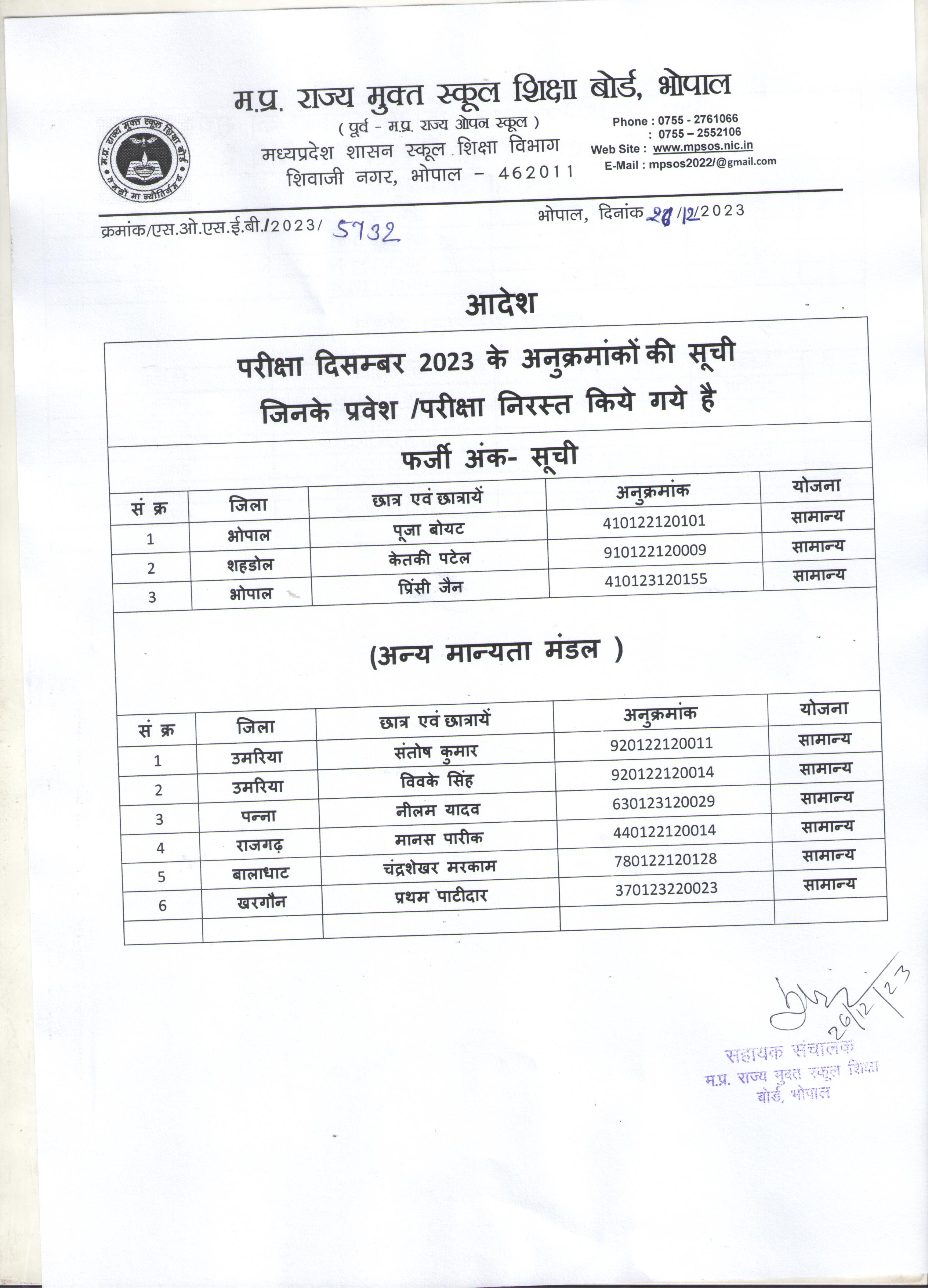 www.mpsos.nic.in वेबसाइट के अलावा म.प्र. राज्य मुक्त (ओपन) स्कूल शिक्षा बोर्ड की अन्य कोई वेबसाइट मान्य नहीं है। ऐंसी दशा में किसी अन्य वेबसाइट पर म.प्र. राज्य मुक्त (ओपन) स्कूल शिक्षा बोर्ड की कोई भी जानकारी अथवा परीक्षा परिणाम स्वीकार अथवा मान्य योग्य नहीं होंगी।