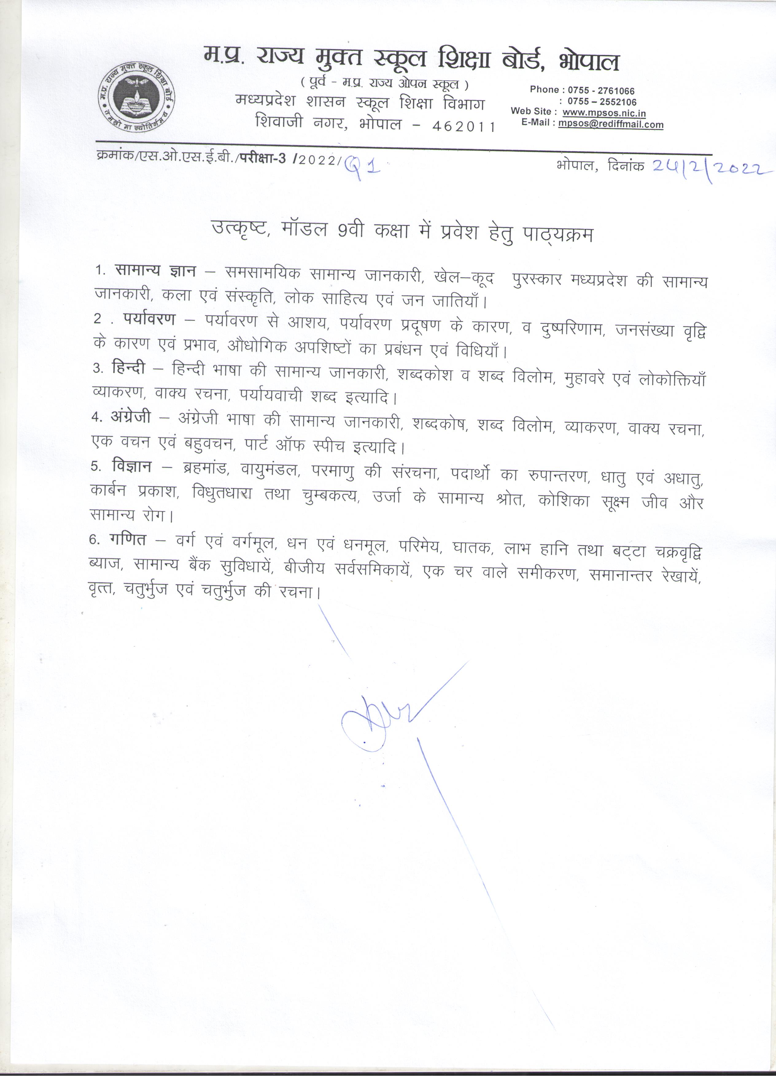 वेबसाइट पर दी गई यह जानकारी छात्रों को योजना संबंधी परिचय के रूप में है। अधिक एवं विस्तृत जानकारी हेतु म.प्र. राज्य मुक्त स्कूल शिक्षा बोर्ड की विवरणिका का अवलोकन किया जा सकता है।